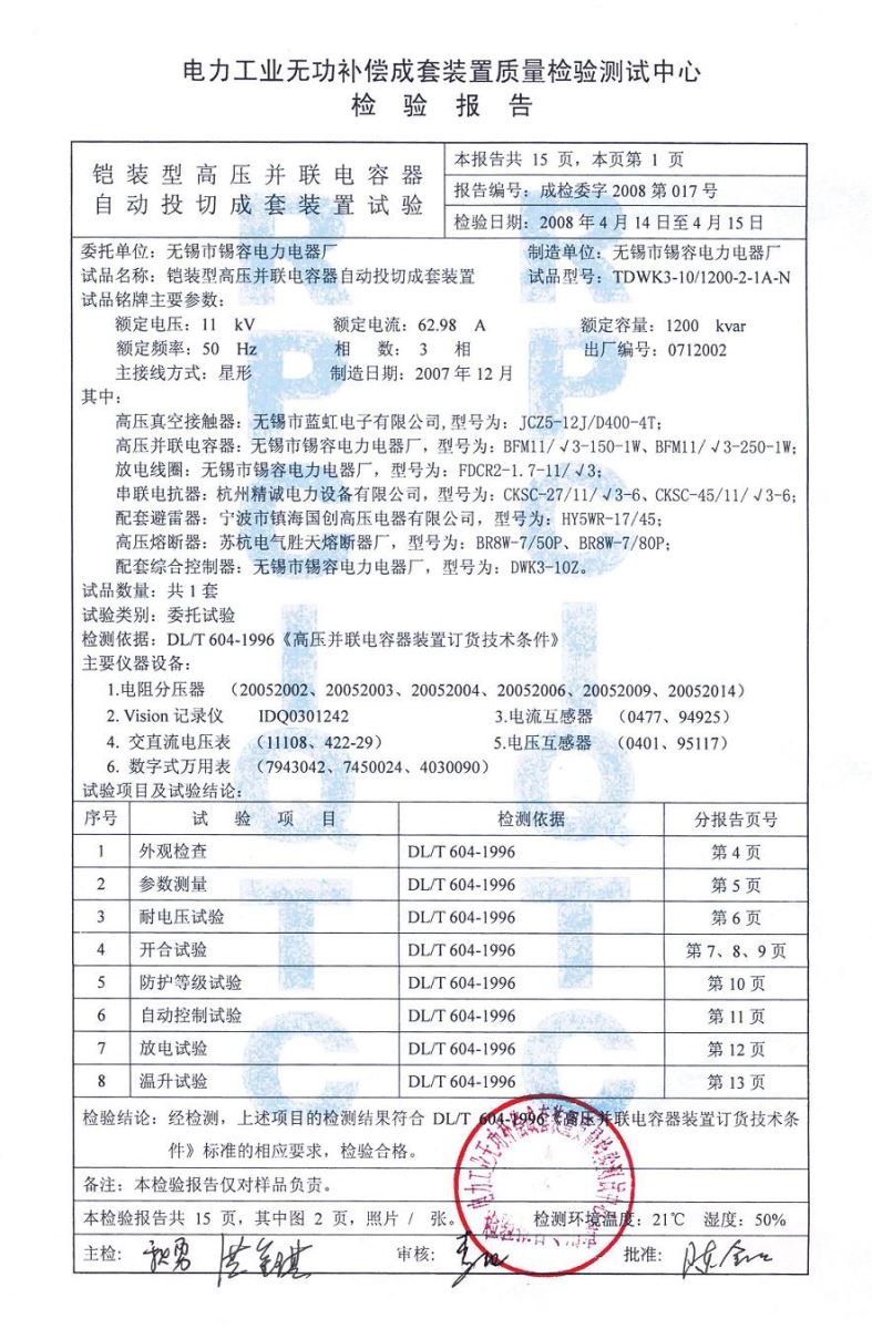 Test report release time:2020-07-20 04:06:13source:Wuxi Xirong Electric Appliance Co., Ltd.Click:1528